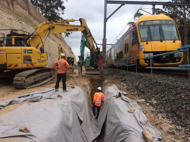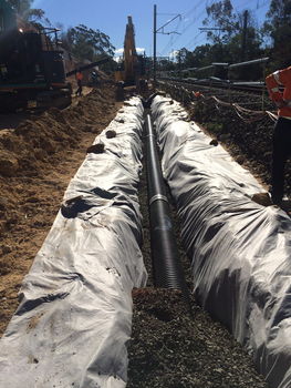 | Duration: June 2014 - Sept 2015 Scope of Works: - Civil & Tunnel were also engaged by Leighton / Lend Lease JV to supply plant, labour and supervision to construct the 5km intertrack drainage pipeline, which is critical to the construction of the new track