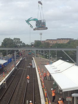 - The excavators (13 ton and 5 ton) were lifted onto the platform and the culverts and deck slabs were lifted into position using a 300t crane over the existing platform buildings.